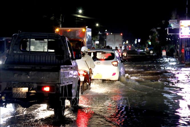 | Mưa lớn kéo dài khiến nhiều khu vực ven biển Lâm Đồng chìm sâu trong nước, buộc lực lượng chức năng phong tỏa nhiều đoạn Quốc lộ 1A trong tối 4/12. |